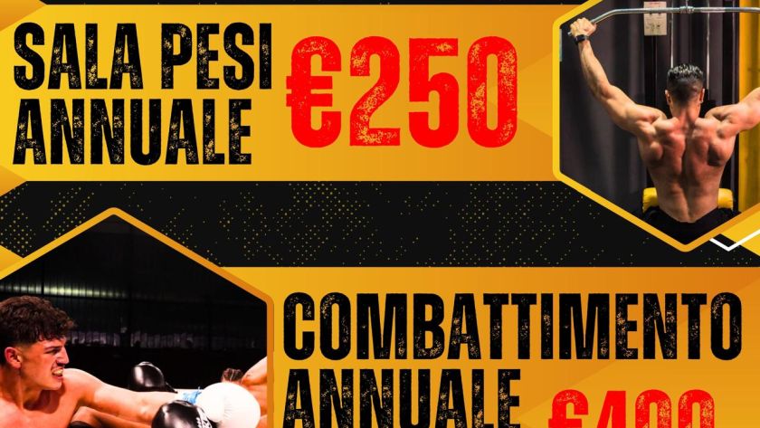 Approfitta della Promo Annuale Sala Pesi e Combatttimento, contattaci o vieni a trovarci per ricevere maggiori informazioni